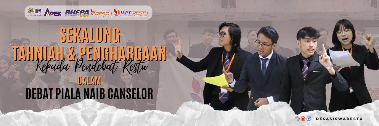 Setinggi-tinggi tahniah diucapkan kepada barisan pendebat yang telah mewakili Desasiswa Restu untuk Debat Piala Naib Canselor Sidang Akademik 2022/2023 atas pencapaian meraih tempat ke-3 secara keseluruhan 👏🏻